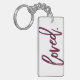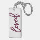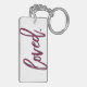 Loved. Burgundy Modern Trendy Script Typography Key Ring