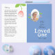 A fresh, clean memorial or funeral service program with stylized salmon rose bud graphics and Loved One typography with "forevermore" in an infinity symbol. NOTE: These come as a flat sheet. You will have to fold them yourself.