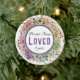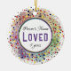 Personalised Photo Ceramic ornament with your person's name, age or year and the word "Loved", multi deep, watercolor like shades with a spray of tiny coloured dots. HAMbyWhiteGlove aka HAMbyWG