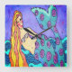 Lovely Abstract Mermaid Art Square Wall Clock