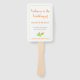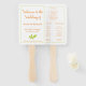 A lovely autumn themed wedding program hand fan, this item features a light green border with information written using orange text. The background is white and there is a green leaf graphic on the front. Customise yours today!