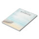 A notepad with a beautiful rustic image. Subtle colours of light blue, sandy brown and gentle white. A beach scene with a boat on the shore and a faded lighthouse off in the distance with birds flying around. An elegant shabby look.