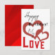 Celebrate a special birthday with this charming greeting card featuring a couple of hearts. The elegant design includes "Happy Birthday My" in bold black letters and "Love" in striking red, making it a heartfelt keepsake.