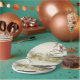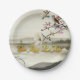 Lovely and bucolic scene with cherry blossom bird as background + golden Happy New Year in Vietnamese. Design on paper plate. Matching paper napkin, greeting card, postcard, invitation and more.... Perfect for a romantic and timeless Vietnamese New Year and for year of the Ox 2021.