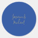 Lovely Chic Calligraphy Couple Names Blue & Gold Classic Round Sticker