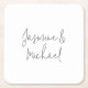 Lovely Chic Calligraphy Couple Names Square Paper Coaster