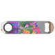 This artwork features a stylised "BIRTHDAY" banner strung across the top, with a prominent "A" positioned on the right side. Below, a small, potted plant adorned with colourful flowers is centrally placed. The background is a blurry interior scene, creating a festive atmosphere suitable for a birthday celebration. The image is framed by a solid purple border, providing a bold and defining edge.