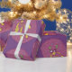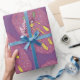 Cute cartoon creature on wrapping paper.Custom color background for kids party, girls birthday gift wrapping.