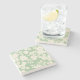 The coasters are gorgeous, a quality feel and heavy weight. They look like a precious archeological find. A rustic stone juxtaposed with a modern floral black and white print. I like the way the print goes slightly imperfect on the cut stone edges giving them a kind-of natural beauty.