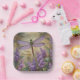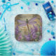 These beautiful birthday paper plates feature a gorgeous garden scene featuring a dragonfly and lilac flowers.