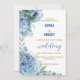 A flowery invitation of lovely dusty blue flora arranged in an elegant and chic way,