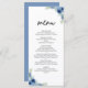 The Lovely Dusty Blue Floral Wedding Menu adds a touch of elegance and refinement to your reception tables while enhancing the overall dining experience for your guests. Featuring soft dusty blue floral designs and a clean, sophisticated layout, this menu is perfect for romantic, garden, or spring themed weddings. It beautifully showcases your carefully selected courses while tying into your overall wedding decor. Fully customisable on Zazzle, you can easily personalise the menu with your dishes and special details, creating a polished and memorable presentation that guests will truly appreciate.