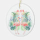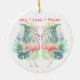 Lovely Fairy Tale For Two Flamingo Tropical Flower Ceramic Ornament