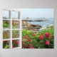 CANVAS-LIKE WINDOW VIEW GARDEN OCEANSCAPE OGUNQUIT .Enjoy this view every day! This lovely scene is framed by an open window and creates the impression of looking out through a real window so that you can wake up in the morning and look out your window and imagine you see the lovely garden and ocean view.