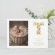 Lovely Gold T Initial with Romantic Floral Design for Newborn Photo Announcement Card.