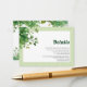 This charming spring wedding details card showcases a delightful combination of lush greenery and elegant stripes. The vintage-inspired design exudes a sense of timeless beauty, with a lovely arrangement of greenery adorning the upper left corner. Adding a touch of sophistication, a delicate striped pattern in a soft shade of green frames the card. The back of the card is equally enchanting, featuring borders of greenery that gracefully adorn the top and bottom sections, completing the overall aesthetic.