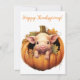 Adorable pig in a Thanksgiving pumpkin watercolor artwork can send your greetings this season. Edit the text on the back to include your own custom greeting. Also, all animal-themed products sold in the Paws Charming shop help us make a donation to animal charities, so you are doing good while you shop. Thanks for looking; we appreciate your business at Paws Charming.