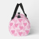 Hearts pattern duffle bag. Presented in shades of pink.
