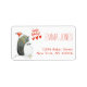 NewParkLane - Christmas Address Labels, with a cute cartoon penguin in watercolor, sitting on a tree stem, and with 'Lovely Holidays' wish in fun, handdrawn typography, and three cute red hearts.