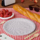 These large paper plates with a crinkled design are a lovely lavender that will fit in with wedding showers or any occasion featuring pastel colours.