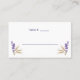 Nothing says romance like lavender, and on this fall wedding place card, the delicate blossoms make a soft frame for the text. Wheat is paired with the lavender to add a rustic flair to the design. A sans serif typeface is used for the headings for modern simplicity. On the back, a dark purple background contrasts with a white front. A wheat and lavender pattern also decorates the back. Celebrate your romantic fall wedding with this rustic lilac place card.