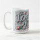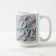 A fun and whimsical blue and peach Love Mug with layers of paper cut flowers and plenty of frills.