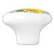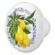 A charming ceramic knob featuring a sweet pitcher filled with bright yellow lemons and lush green leaves, all encircled by elegant blue toile-style filigree. This design adds a touch of Country French and European flair to kitchen cabinets or furniture. A delightful accent piece and a thoughtful gift for bridal showers, Mother’s Day, or any lemon-loving home decorator.