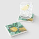 The coasters are gorgeous, a quality feel and heavy weight. They look like a precious archeological find. A rustic stone juxtaposed with a modern floral black and white print. I like the way the print goes slightly imperfect on the cut stone edges giving them a kind-of natural beauty.