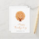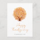 simple script lettering happy thanksgiving holiday card with fall tree leaves. The text and back colour can be personalised.
