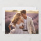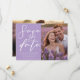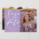 This lovely lilac Save the Date card features beautiful white typography on a soft purple background for a spring ceremony in the afternoon next to your couple engagement photo. Lavender pastel photograph invites are a a delicate colour choice for an elegant garden occasion.
