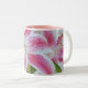 Pink & White Stargazer Lillies Coffee Mug on a pink lined mug