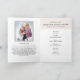 A beautifully appointed headline accompanies a favourite photo on this celebration of life program. Easy to customise for your loved one's memorial. Includes space for an obituary, service program and memorial details or message from the family. Background colours can be changed as needed.