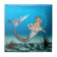 Beautiful fantasy mermaid on a blue sparkling ocean background