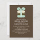 Stylish and chic invitations feature a cute vector illustration of six brown, beige, and blue or aqua french macaron cookies inside a gift box with a bow on top. Visit our store for more colour options and matching products.