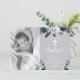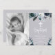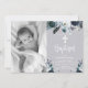 Lovely, elegant script Navy Blue Christening and Baptism Invitation. Send to family and friends with this modern personalised religious flat card. It features hand lettered ” Baptism” script, navy blue and white watercolor rose floral arrangement on grey background. This beautiful photo thank you card will also be perfect for baptism / christening / naming ceremony / confirmation and holy communion thank you card for boy or girl. #3354