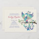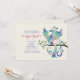 A fanciful peacock, with hues of blue feathers, is perched on a tree branch. This lovely invitation is well-suited for many celebrations including birthdays, bridal showers, engagements and more.