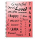 This pretty pink ombre Gratitude Journal features positive affirmations. Words such as "thankful" "lovely" "grateful" are presented on the front cover. Demonstrate your gratitude today!
