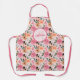 This beautiful apron is pale pink with pink and orange roses, tan daisies and green botanical pattern. At the top is a round template for you to put your name and initial.