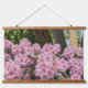 Decorate your living space with this horizontal, hanging wall tapestry with wooden tops that features a photo image of lovely, pink Rhododendron blooms.