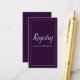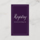 Your guests can visit your wedding registry website using this lovely enclosure card. Set upon a purple background with a silver border, "Registry" is written at the top centre in large silver cursive font. Under the Registry heading is a template for inserting your wedding website. Customise your registry card today!