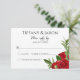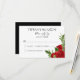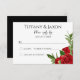 The RSVP card addition to the Lovely Red collection includes a solid black background. The front has black font and a red floral arrangement on a white background for the response card.