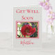 A personalised greeting card for a loved one, this design features a grey background with a lovely red rose in the middle. "Get Well Soon" is written at the top and the recipients name can be personalised at the bottom. All text is in a beautiful red colour. The inside features a beautiful message.