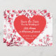 A lovely Valentine themed save the date for the whole month of February, this design features a bright red heart on white and red heart background. Use the templates to fill in your information. Personalise your Save the Date today!