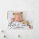 Lovely calligraphy photo birth announcement. Easy to personalise with your details. Please get in touch with me via chat if you have questions about the artwork or need customisation. PLEASE NOTE: For assistance on orders, shipping, product information, etc., contact Zazzle Customer Care directly https://help.zazzle.com/hc/en-us/articles/221463567-How-Do-I-Contact-Zazzle-Customer-Support-.