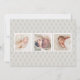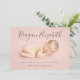 Affordable custom printed baby birth announcement photo cards. This stylish minimalist design features elegant typography overlaid on your full bleed newborn photo. Personalise it with baby's name and birth stats or other custom text. Reverse side features a chic geometric diamond pattern with space for 3 additional photos. Use the design tools to choose any background colour, edit the text fonts and colours, add more photos and create a unique one of a kind baby birth announcement for your new baby girl.
