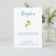 This reception enclosure card is simply adorable. It features "Reception" written at the top in lovely blue cursive font followed by a mason jar graphic with a single sunflower inside. Underneath the artwork is information about your reception plus the Venue location and address. Shop the whole collection today!