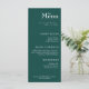 "The Menu" Wedding Menu presents a sophisticated selection of culinary delights against a lush, deep green backdrop reminiscent of the verdant foliage found in a secluded garden or a tranquil forest glade. The deep green hue exudes an aura of opulence and elegance, setting the stage for a memorable dining experience. The elegant header sets the tone for a refined celebration, inviting guests to indulge in a feast for the senses. Personalise this exquisite menu with your names and date, adding a bespoke touch that transforms it into a cherished keepsake of your special day.