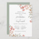 This design surrounds your ceremony rehearsal and dinner details with a spray of watercolor tiny Tiny Blush flower bunch and minute leaves and white bellflowers in an elegant palette of greys and greens and coral pink.