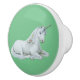 Picture of a lovely unicorn on a green background, graces this ceramic knob to use for drawers, cabinets and other furniture. A great way to add a personal touch to your home!