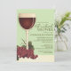A beautifully hand-drawn wineglass of a red wine is nestled among luscious red grape clusters a perfect design for a wine-themed bridal shower celebration. When the bride loves wine, if the party or wedding is at a vineyard, or in wine country, this elegant design will set the stage for your wonderful event. The wine glass is delicately shaded and holds a lovely red varietal as ripe red grapes spill out across a trendy mint green background. Offered here on the basic paper stock, this design would also look especially wonderful on linen or felt. Matching postage stamps are also available: